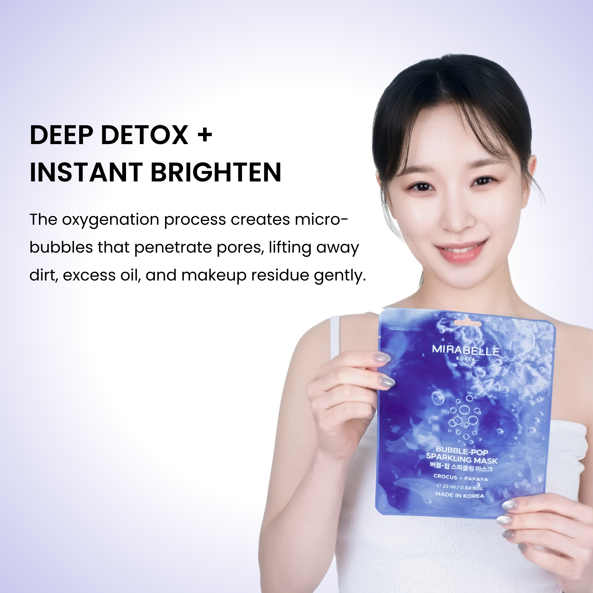 Korean Bubble-Pop Sparkling Mask – where skincare meets bubbly fun! This oxygen-infused sheet mask starts to fizz and foam upon contact with skin, gently lifting away dirt, excess oil, and dead skin cells. Infused with revitalizing botanical extracts and carbonated water, this mask helps detoxify, brighten, and energize dull, tired skin – leaving you with a visibly radiant, smoother complexion.